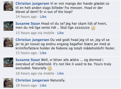 Retfærdigvis skal det siges, at samtalen under middagen ikke var helt pæn, kredsende som den var om detaljerede redegørelser for fremgangsmåden ved maveplastik, udtamponering og vigtigheden af at eje store trusser, der er andet end mere end badehætter til klitoris. Spørg selv Mikkel Birkegaard, som burde have været med på dette billede, men gemte sig helt ude til højre, fordi han fik for meget.